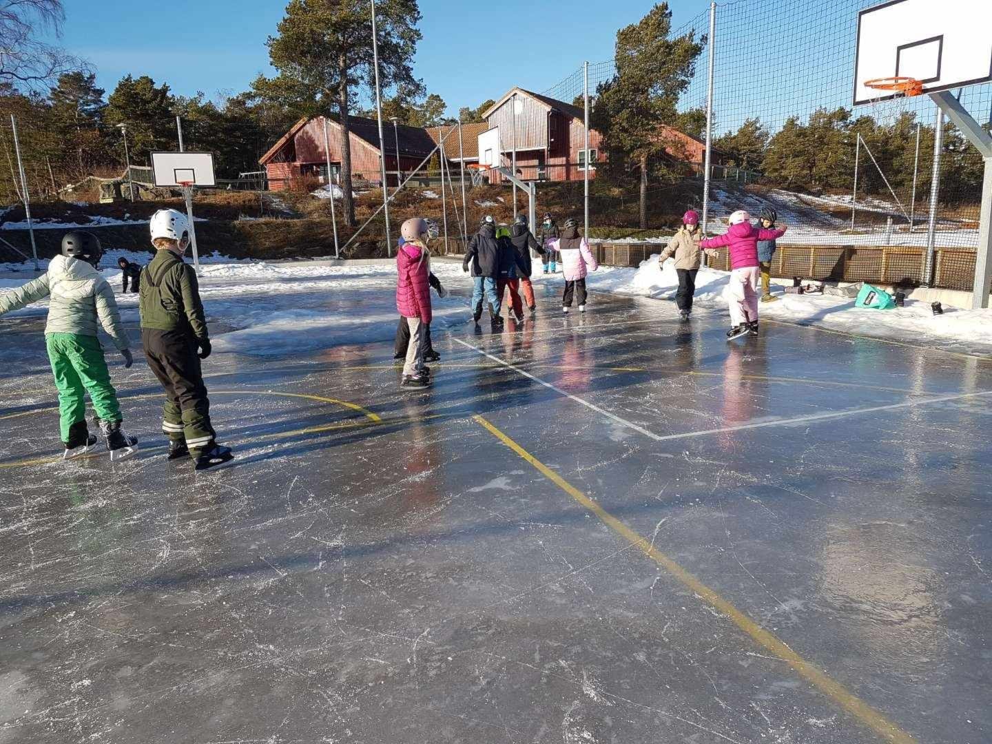 På basketbanen på Kjempesteinsmyra legger vi is så snart kuldegradene setter seg.